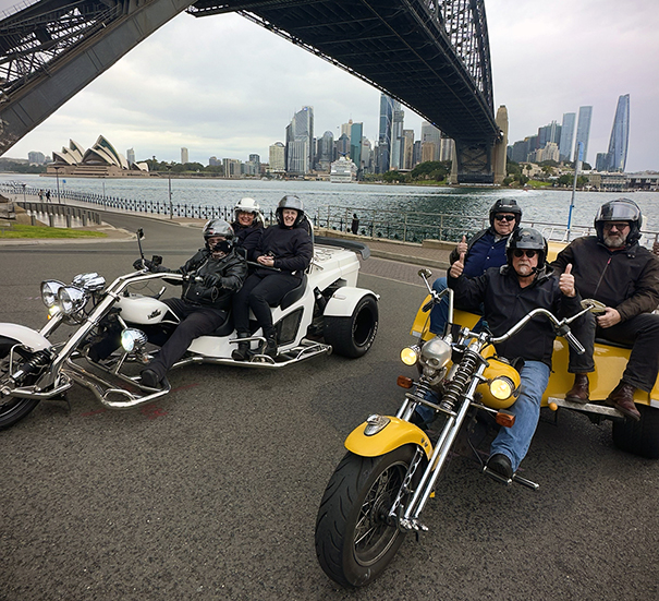 The friends North Shore Skimmer trike tour was organised by our passengers who are local. They were entertaining their friends from the US. and thought a trike tour would be a fun and unique way to see some parts of Sydney. It sure was a memorable and fun thing to do in Sydney!