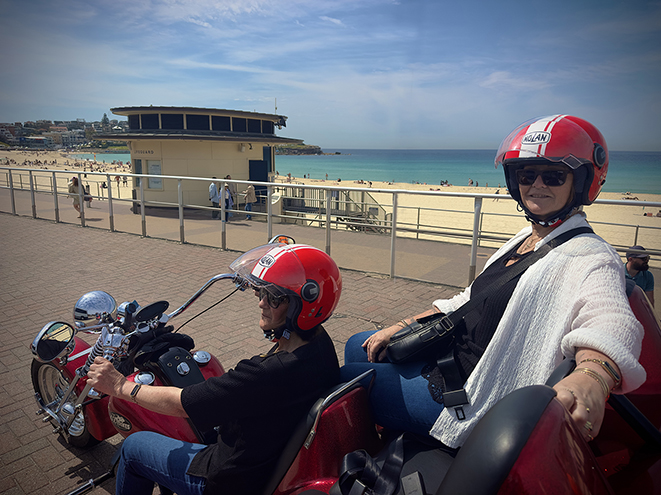 The Bondi Beach trike ride was organised at late notice (2 days before), by these friends from New Zealand. In Sydney for 10 days, we were the highlight of their Sydney trip! See testimonial we will put on tomorrow. We picked them up from their accommodation in Surry Hills.