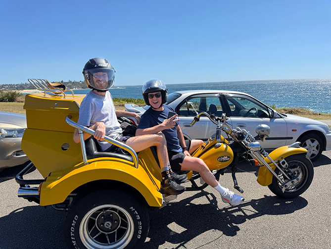 Next, they rode past the main beach of Manly. Manly has several claims to fame; it was the birthplace of surfing in Australia, the first place to legalise all-day bathing in 1903 and one of the world’s first Surf Life Saving clubs. Manly Beach was the location for the first World Surfing Championships held in 1964. Already, beaches disability trike tour, has shown our passengers some beautiful beaches.