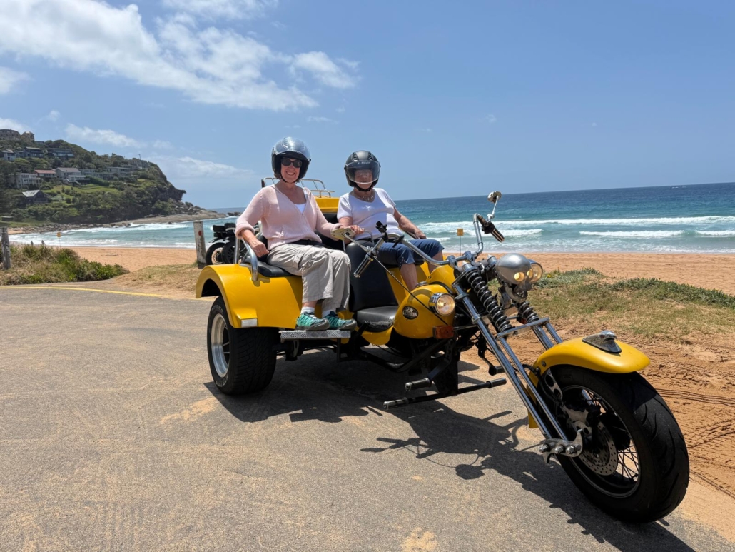 The surprise 89th birthday tour on a trike, was organised by Angie for her mum Jeanette. Angie wrote, “I saw the yellow trike when we were out and about and thought it would be something different for mum.” It sure was, a unique, fun and memorable experience around the northern beaches of Sydney.